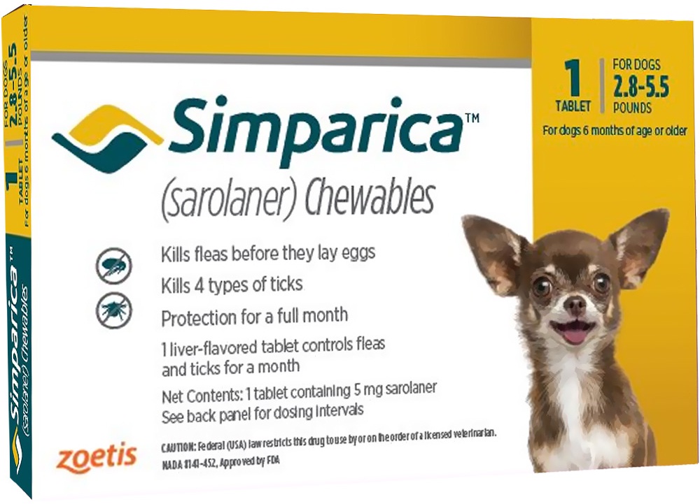 Simparica Chewables for Dogs 2.8-5.5 lbs (Yellow)